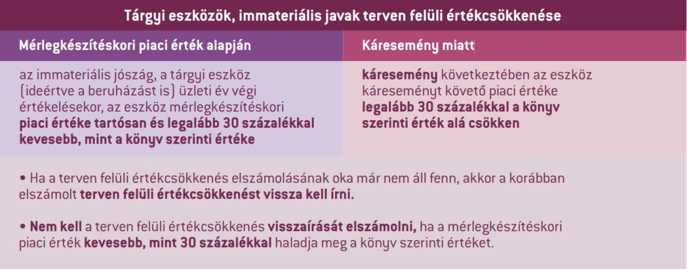 Terven felüli értékcsökkenés szabályai mikrobeszámoló választása esetén (lásd 1. tábla)