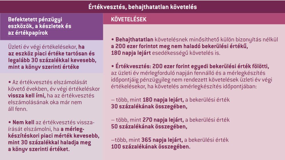 Értékvesztést kell elszámolni a 100 ezer forint egyedi bekerülési érték fölötti, az üzleti év mérlegforduló napján fennálló és a mérlegkészítés időpontjáig pénzügyileg nem rendezett követelések üzleti év végi értékelésekor, ha a követelés a mérlegkészítés időpontjában